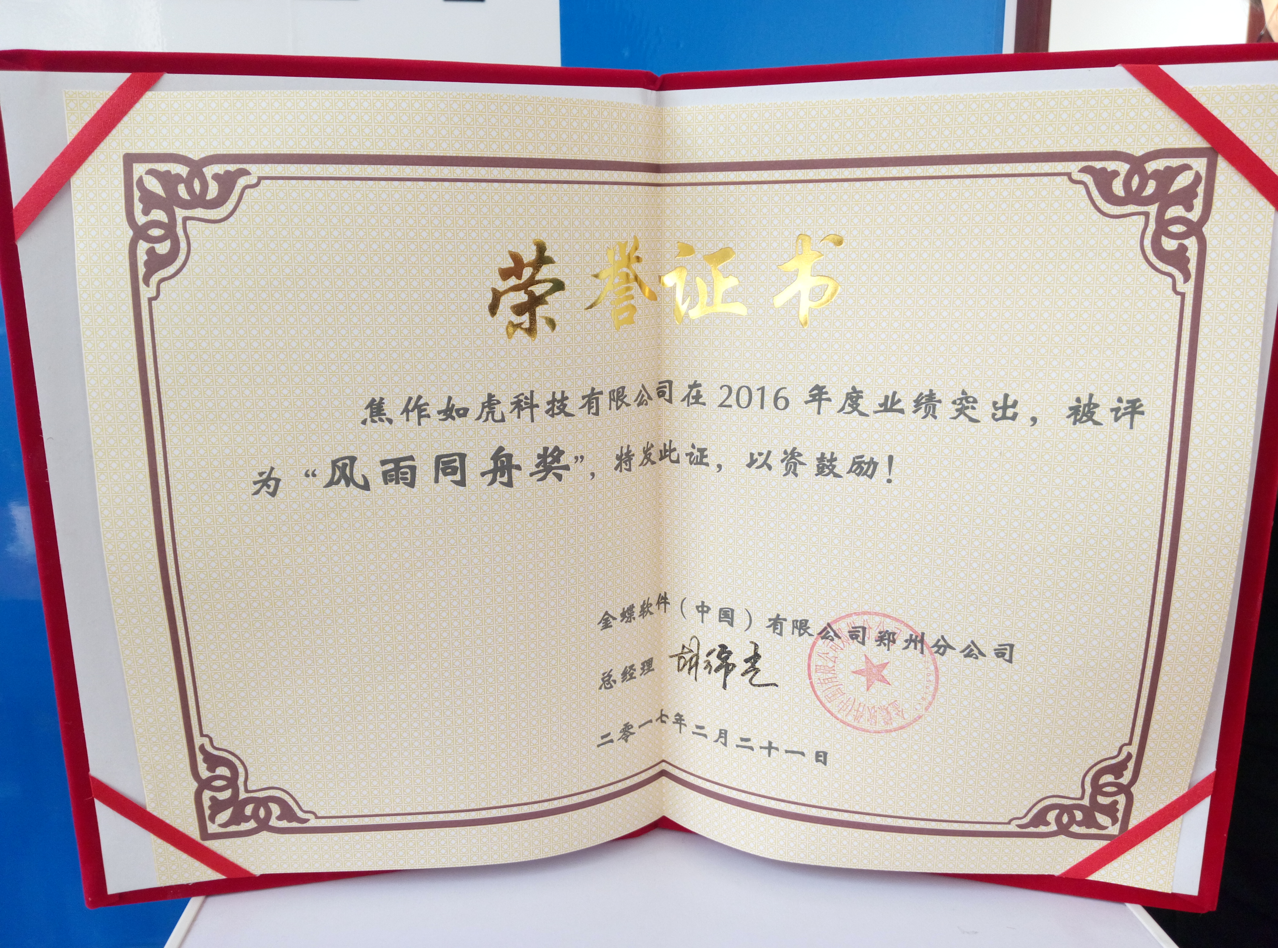 焦作金蝶軟件2017新榮譽