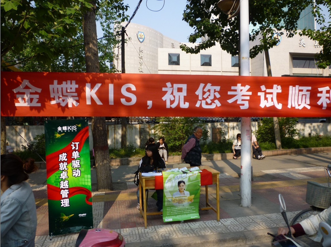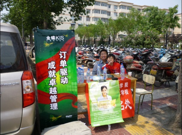 2010年5月15日烈日炎炎,金蝶軟件焦作白金合作伙伴焦作如虎科技有限公司的“焦作市會計職稱考試”營銷活動拉開了帷幕!在李春杰經理的帶領和指導下,我公司所有工作人員火速進入三個主戰場——學生路小學站、市技校、萬方學校站。雖然天公不作美,風大,雨大,但沒有我們的決心大,本次活動準備了充足的礦泉水和鼠標墊等小禮品,為參加考試的莘莘學子送去了清涼。大家眾志成城、齊心協力,基本上完成了預期的目標。通過這次營銷活動,我們有了很深的感悟和體會,至少有以下幾個方面:
